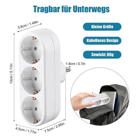 Der Steckdosenadapter muss über die richtige Leistung verfügen, um die elektronischen Geräte sicher mit Strom zu versorgen. Die Leistung wird in Watt angegeben und sollte mindestens so hoch sein wie die Leistung des Geräts, das angeschlossen werden soll.